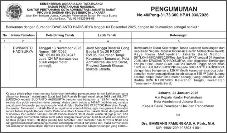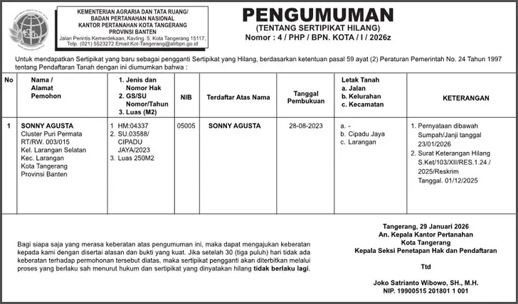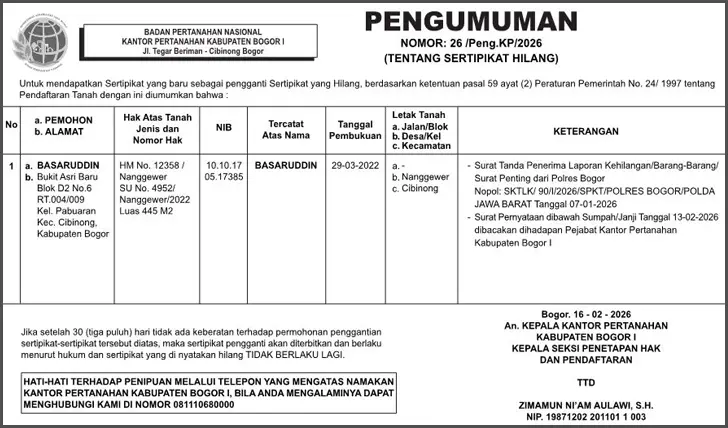 PASANG IKLAN PENGUMUMAN, KEHILANGAN, AKUISISI, PENGALIHAN SAHAM, LIKUIDASI, RUPS, RUPS TAHUNAN, LAPORAN KEUANGAN, PEMBUBARAN PERUSAHAAN, PENURUNAN MODAL, DUKACITA, PELELANGAN.