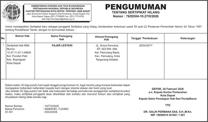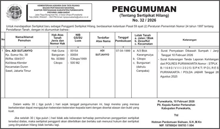 PASANG IKLAN PENGUMUMAN, KEHILANGAN, AKUISISI, PENGALIHAN SAHAM, LIKUIDASI, RUPS, RUPS TAHUNAN, LAPORAN KEUANGAN, PEMBUBARAN PERUSAHAAN, PENURUNAN MODAL, DUKACITA, PELELANGAN.