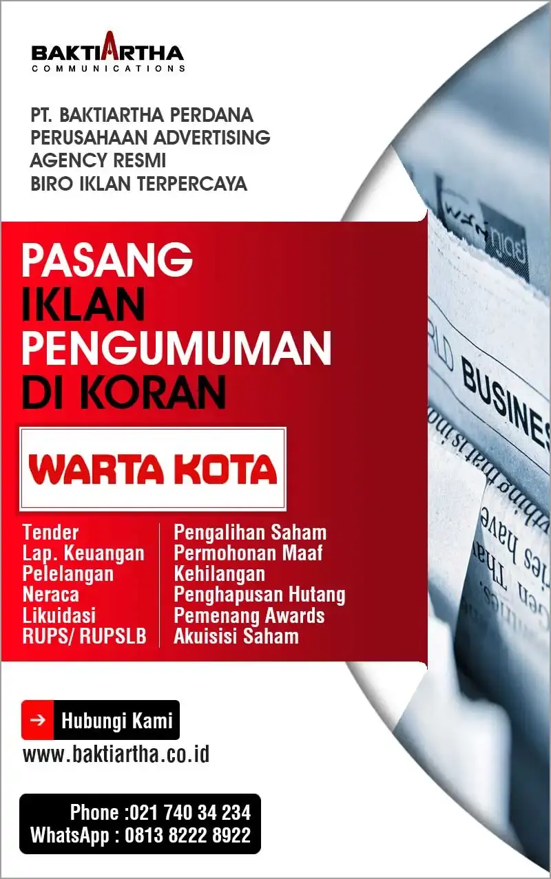 PT Baktiartha Perdana "adalah Perusahaan Advertising yang Spesialis melayani Jasa Pasang Iklan Koran Pangumuman di Koran Wartakota.